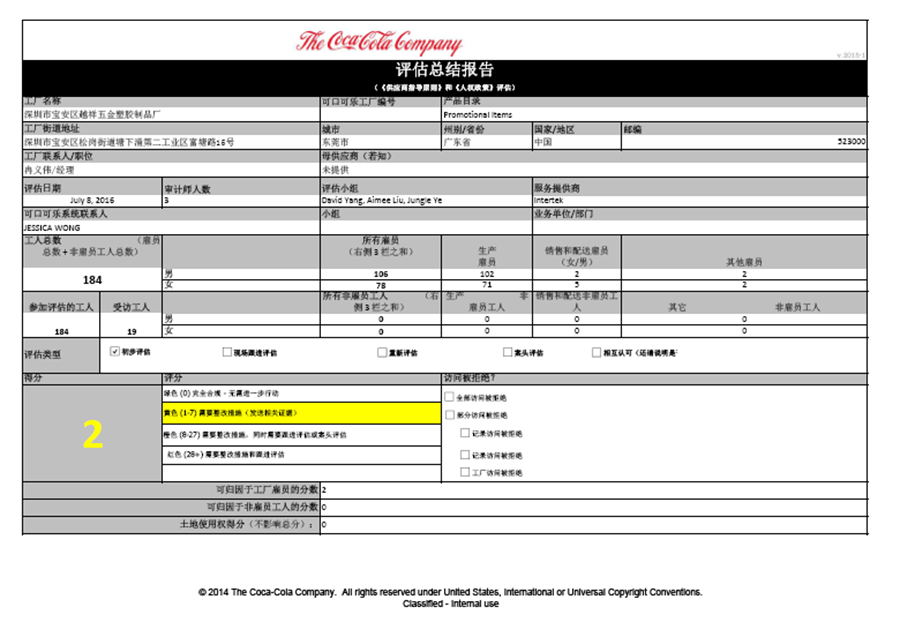 Coca-Cola可口可樂(lè)驗(yàn)廠審核內(nèi)容